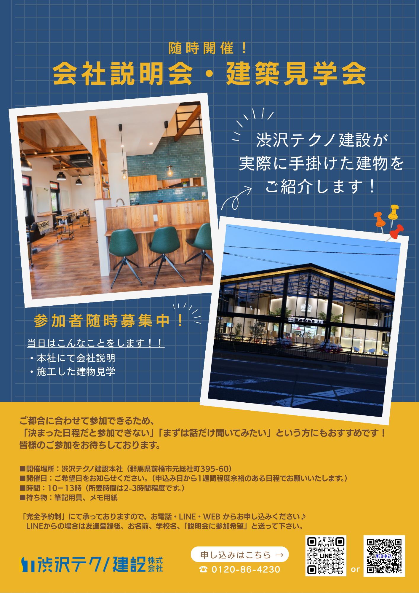 建築業界は公共事業に依存する会社が多いのですが、当社は民間のお客様を対象にしているので、前橋を中心に群馬県内のお客様と末永くお付き合いさせていただいています。何年も前のお客様からのリピートも多く、業績は安定的に伸び続けています。